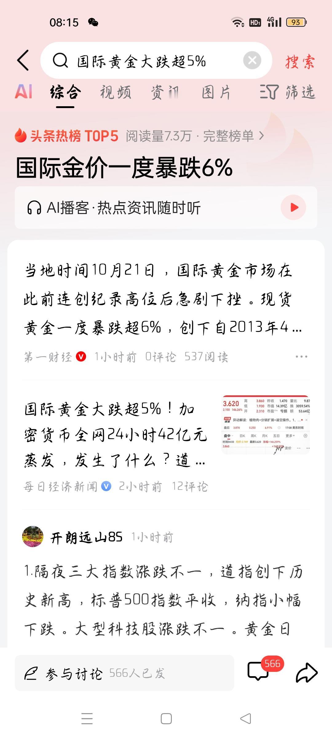 国际金价一度暴跌6%,我想说 据第一财经报道,当地时间10月21日,国际黄金市场