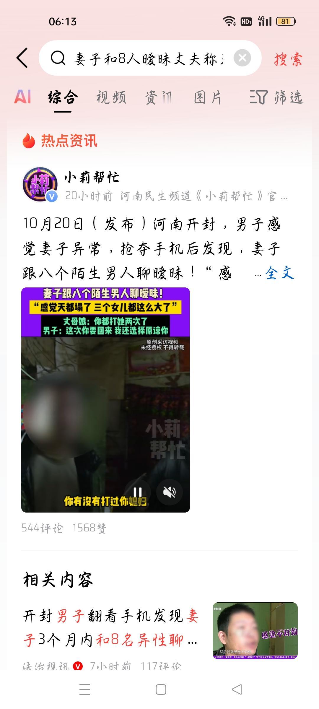 妻子与八个陌生男人聊暧昧,我想说 据《小莉帮忙》报道,河南开封一男子感觉妻子异常