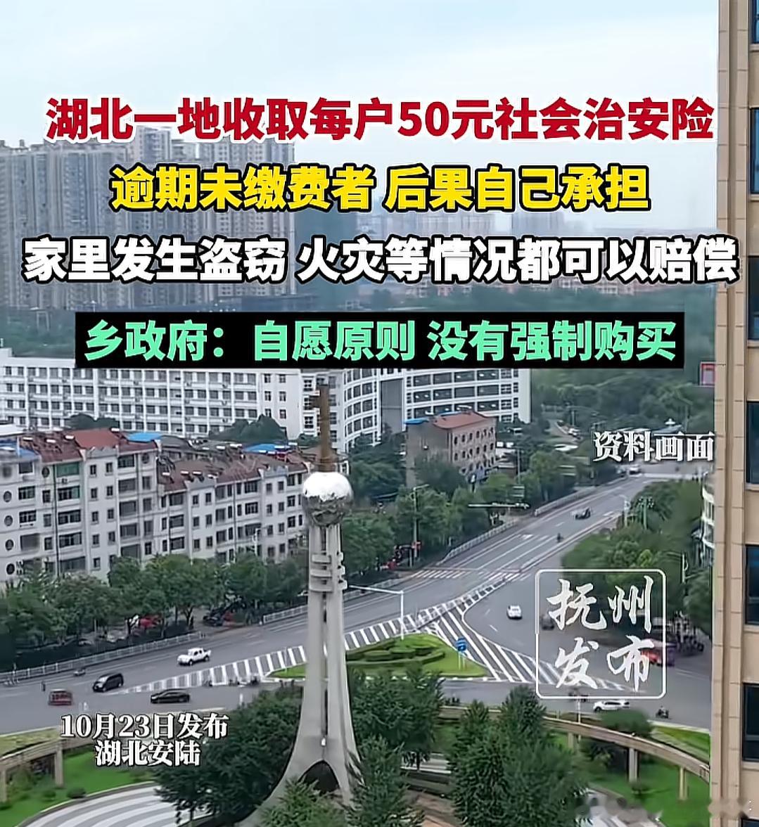 50元社会治安险,逾期未交,后果自己承担家里发生盗窃、火灾等情况都可以赔偿,真出