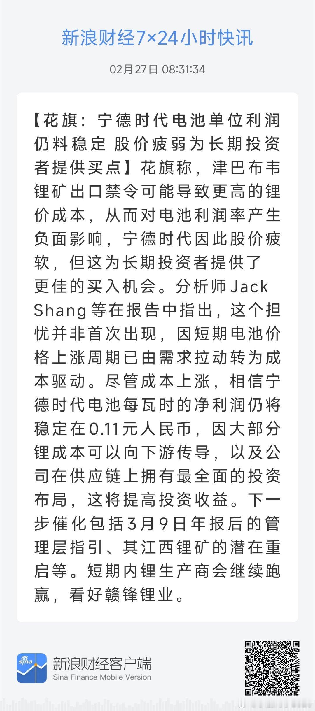 电池龙头对原材料上涨的整体影响可控、韧性强。公司凭借长协锁价、顺畅的价格传导、技