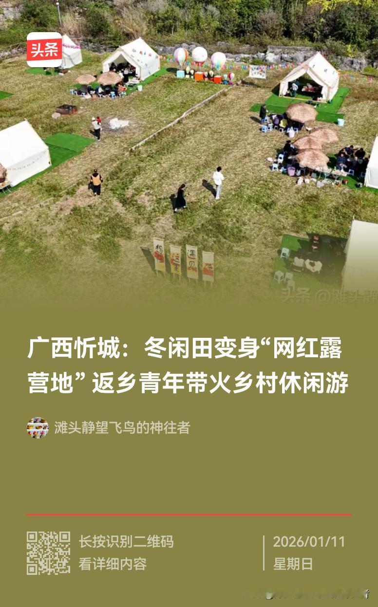 冬闲田变网红露营地 2026年1月10日,暖冬暖阳下,广西来宾市忻城县城关镇板河