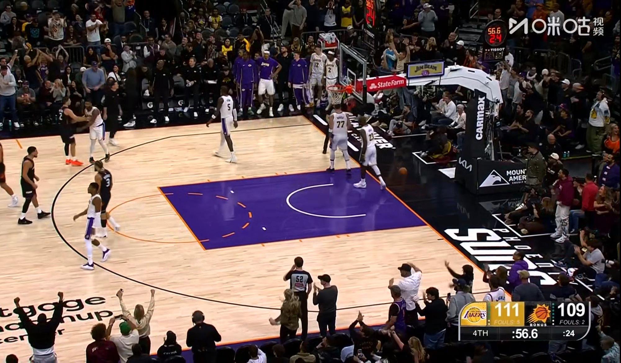 比赛结束,湖人险胜2分! 湖人vs太阳