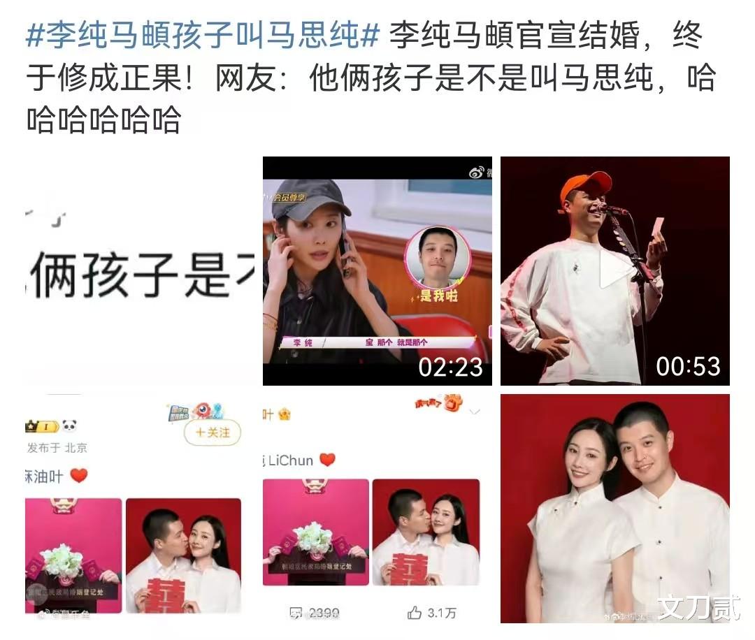 为了响应这个幸福节奏,网友开始造梗,有人说两个人的孩子可以叫“马思纯”;有人说李纯仅仅三天就拿下了要脸的爷们马頔;有人说拿下马頔后,最好的聘礼不是鸽子蛋,而是马頔为李纯还贷的房本;也有浪漫派的表示“魏嬿婉到了南山南,把宫斗剧过成了温馨纪录片”。
