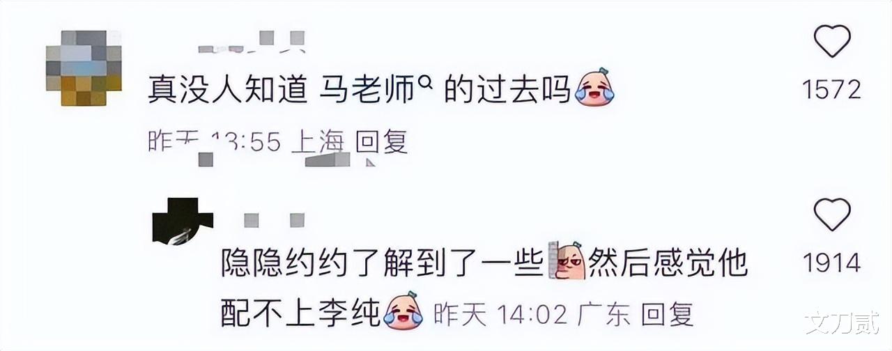 但在一派和乐的祝福声中,也有网友替李纯担心,毕竟看一看马頔的过去,那放荡不羁又爱玩的样子,妥妥的一个情场浪子,不知道李纯能不能降的住他。