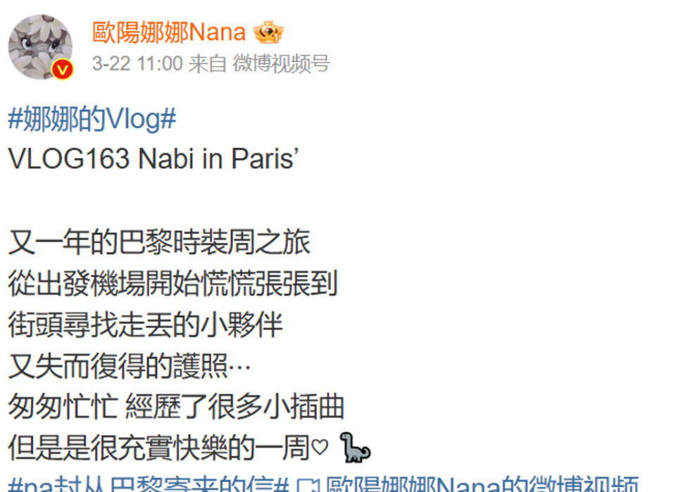 惊魂未定的欧阳娜娜在微博上写道:“从机场慌慌张张到护照失而复得……充实快乐的一周!” 粉丝们一边笑一边调侃:“充实?我看是‘充楞’吧!”“建议下次拍《欧阳娜娜巴黎大逃亡》,票房绝对爆!”