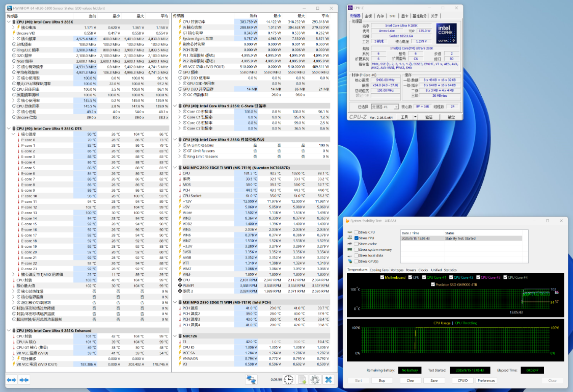 对于兼顾游戏和生产力的玩家来讲,选择Intel 酷睿Ultra处理器的应该并不在少数。酷睿 Ultra 9 285K,24核心24线程设计,单/双核最高睿频频率可达5.7GHz,二级缓存36MB,三级缓存30MB,基础功耗125W,最大睿频功耗250W。