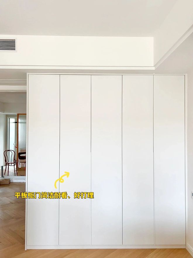 建议大家做柜子,就做最简单的平板木门,柜门只要不做造型,基本上就不会落灰,几个月不擦灰都还是干干净净的。