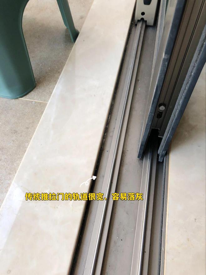 厨房、阳台一般都会做玻璃推拉门,传统推拉门的轨道很宽,还带有深深的凹槽,太容易落灰了,清灰也很麻烦,想要拿个小刷子慢慢清扫,累到让你“怀疑人生”。
