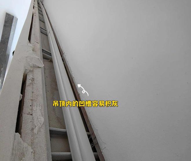 像常见的悬浮式吊顶、多层吊顶都带有凹槽,这些凹槽很容易积灰,由于吊顶比较高,清灰难度自然也就更大,需要借助梯子、高椅子等工具。