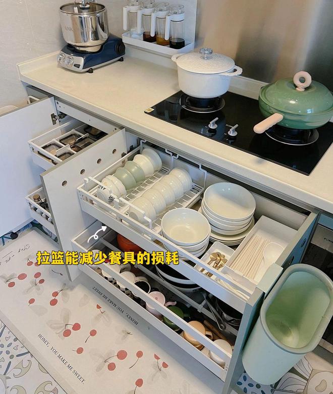 建议大家做橱柜时,尽量多做一些拉篮,主要有以下3点好处。