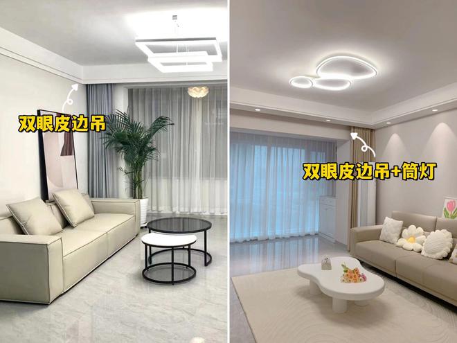 2、双眼皮边吊:双眼皮吊顶实际上是在单眼皮的基础之上,又增加了一层石膏板,两层石膏板形成2cm左右的高度差,看起去会更有层次感。