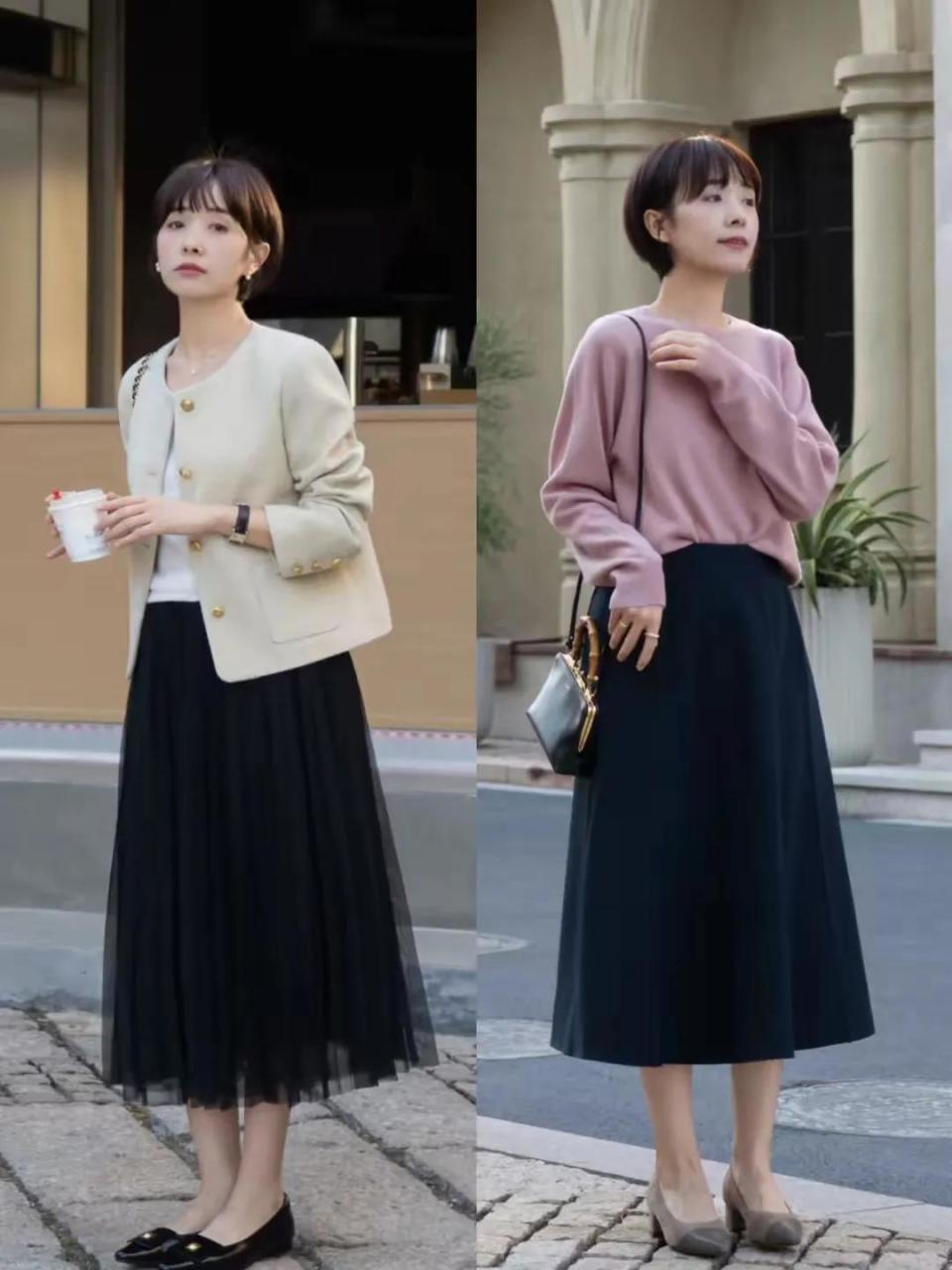 如果年龄是在40岁左右,这时候就不要刻意装嫩了,我们选择长裙来搭配最佳,例如用小香风外套内搭白T恤,加上黑色的薄纱半身裙,脚踩一双黑色的浅口平底单鞋,这一身穿衣打扮优雅得体。