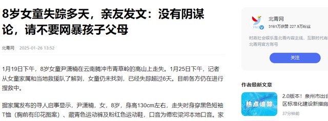 事情再次陷入了僵局,面对这样的情况,网友在表达同情的同时,也展开了猜测。有人认为,一个八岁小女孩,即便是再能跑,又能够跑到哪里去?