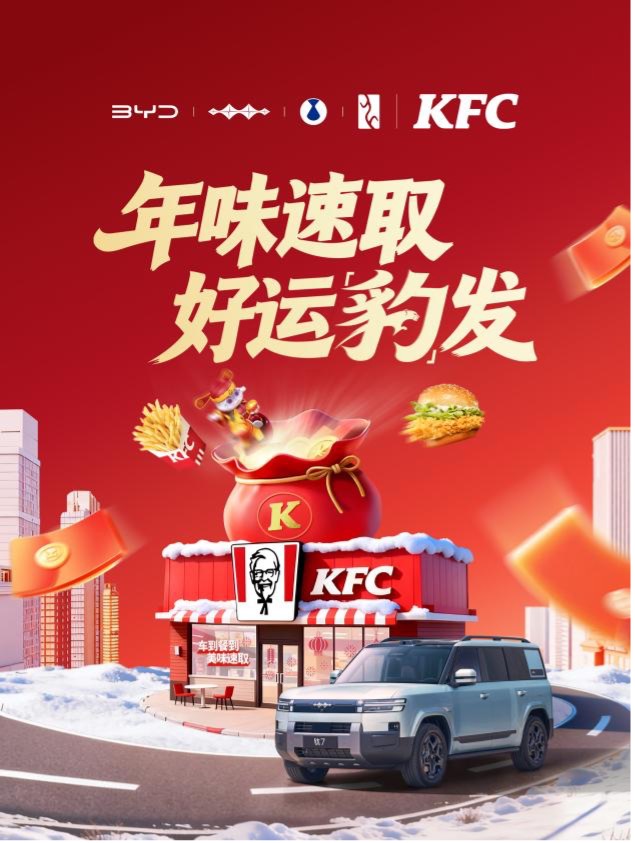 此次马年新春联动,不仅是比亚迪集团旗下各个品牌构建“出行+生活”生态的重要一步,更是两大品牌共创美好车生活的全新起点。 依托比亚迪在智能化、新能源领域的深厚积淀,结合肯德基在点餐场景与用餐体验上的优势,双方的合作远不止于此。未来将逐步推进更深层次战略合作,解锁更多全新可能。