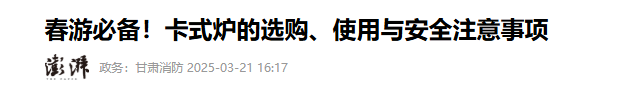 [2].官方媒体:澎湃新闻:2025-03-21《春游必备!卡式炉的选购、使用与安全注意事项》