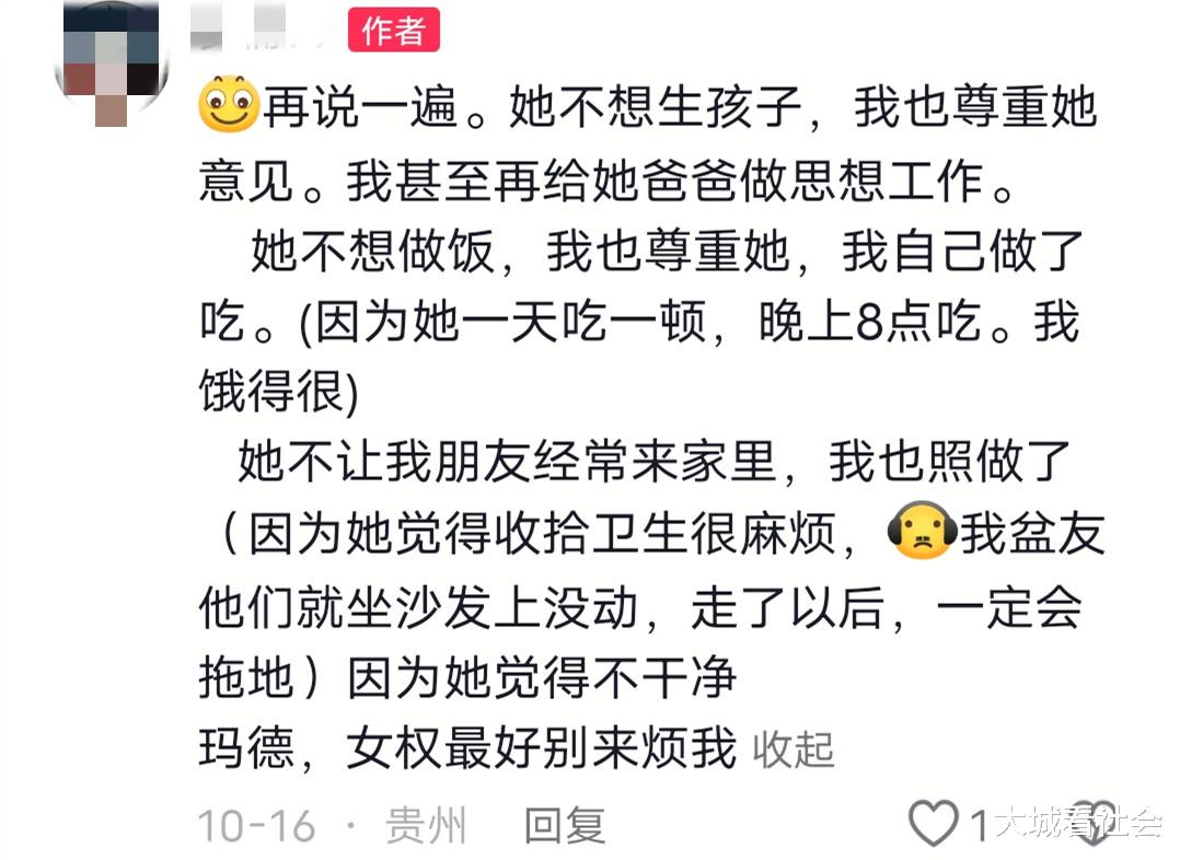 尽管看着是没有到过不下去的程度,不过看男子的文案是怨气挺大的,估计妻子再怎么摆烂下去,两人的日子是过不长久了。