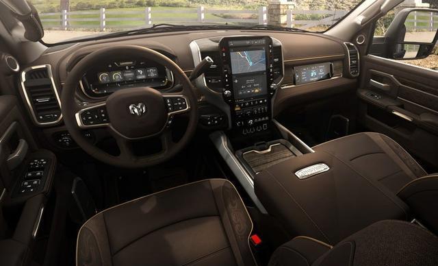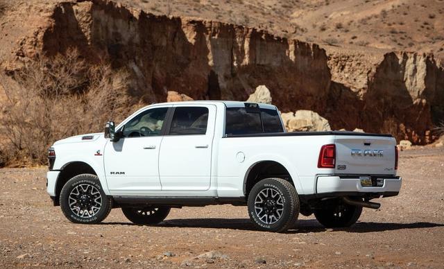 这两款车在牵引能力上那也是相当厉害的。它们可以在有或没有有效载荷和拖车的情况下爬上山。2025年最大的变化就是对康明斯涡轮增压柴油发动机车型的改进。虽然排量还是6.7升,但是缸体重新设计了,变速箱也从六速升级到八速了。这一升级可不得了,它能让配备康明斯发动机的卡车有430马力、1075磅英尺的扭矩,而且牵引能力最高能达到36,610磅呢。Ram还说新款柴油卡车能在七秒内加速到60英里/小时。我查了一些资料,这种重型皮卡的牵引能力提升对于物流运输等行业来说是非常重要的。比如说,在建筑行业,需要经常运输大量的建筑材料,这种强大的牵引能力就可以提高工作效率。