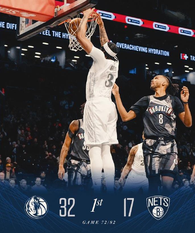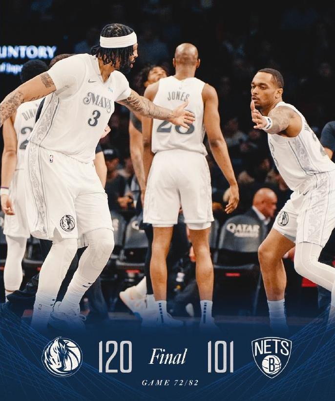 在上一场战胜活塞之后,独行侠今天又在客场以120-101战胜篮网,取得3月以来首次连胜,也送给篮网4连败。独行侠战绩来到35胜37负,暂时又超越太阳,升至西部第十,回到了附加赛区。如果太阳不敌雄鹿,独行侠就能留在附加赛了。