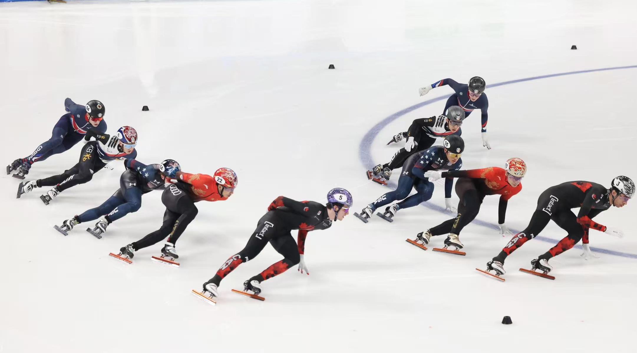 当晚上男子5000米接力的收官战开始时,刘少昂滑最后一棒。