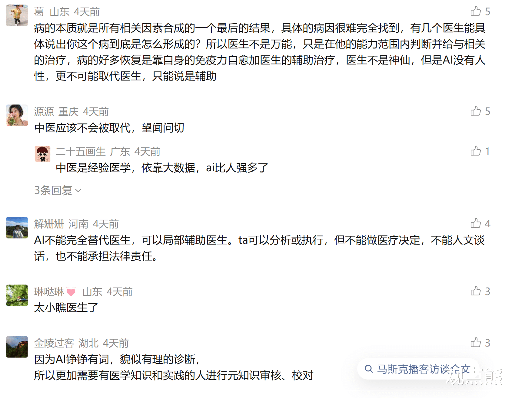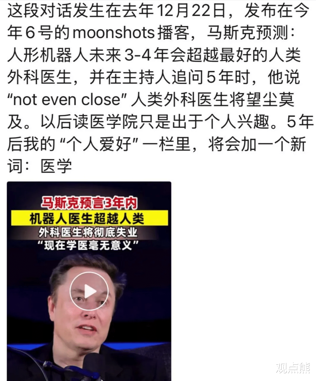 "刚考上医学院的我,是不是该退学?""当医生30年,突然告诉我工作要被AI抢了?""马斯克说的话,不得不信啊!"