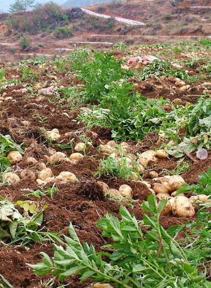 病虫害也是影响土豆产量和个头的“罪魁祸首”之一。土豆容易受到晚疫病、蚜虫等病虫害的侵袭。一旦染上病虫害,土豆就像生病的人一样,变得虚弱无力。在华北的一些农场里,每到土豆生长的季节,农户们就会提心吊胆地检查土豆有没有得病。如果发现有病虫害的迹象,就得赶紧采取措施。可是有些农户缺乏这方面的知识,等到病虫害已经很严重了才发现,这时候就很难挽回了。就像有的农户看到土豆叶子有点发黄,以为是缺肥了,就施了点肥,结果过了几天,叶子都枯萎了,才知道是得了晚疫病,但是已经错过了最佳的治疗时间。