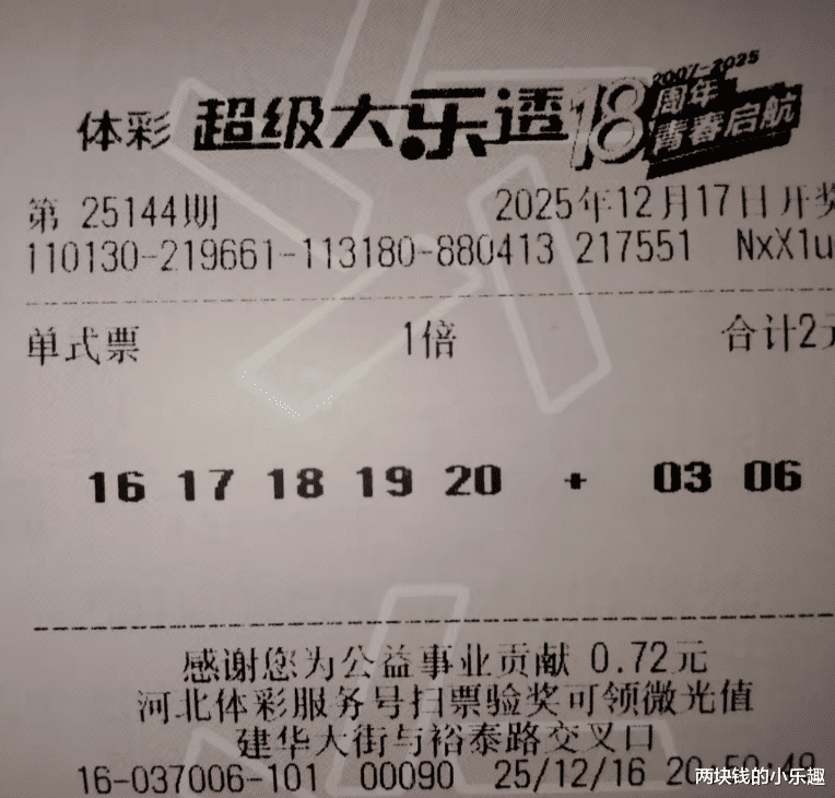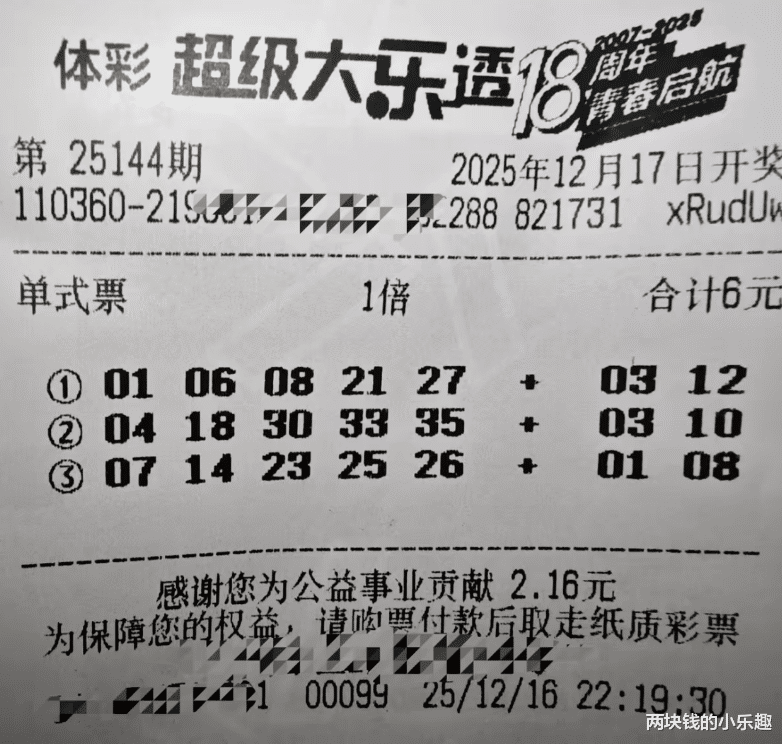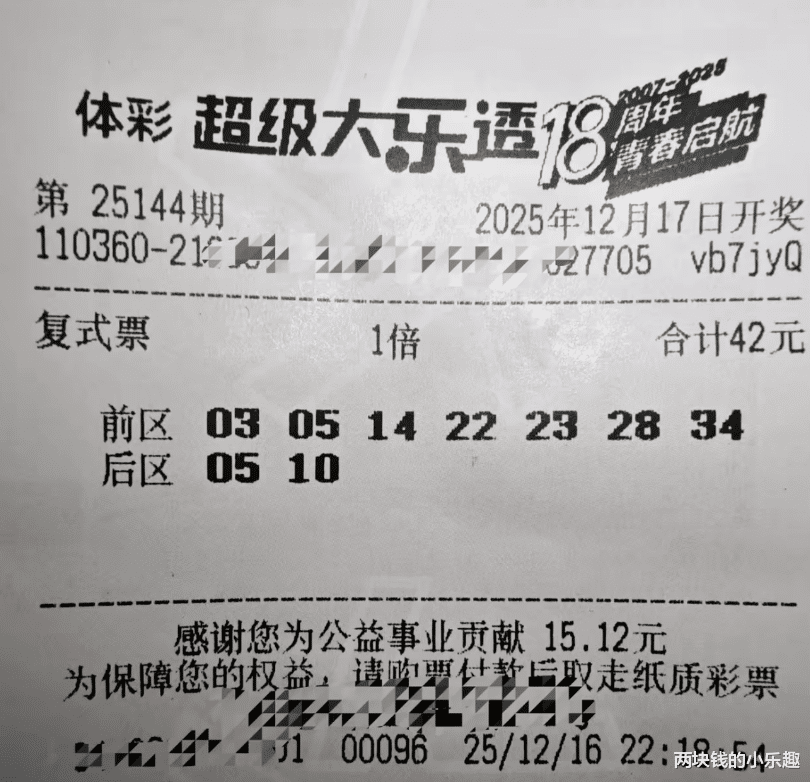 大家好,今天是12月17日,星期三,今天又是大乐透开奖的日子,今晚即将开奖的是第25144期,每期在距开奖还有一段时间的时候,就有不少彩友完成了本期的出票,本期有张1512的复式票也提前亮相了,下面请大家开始欣赏: