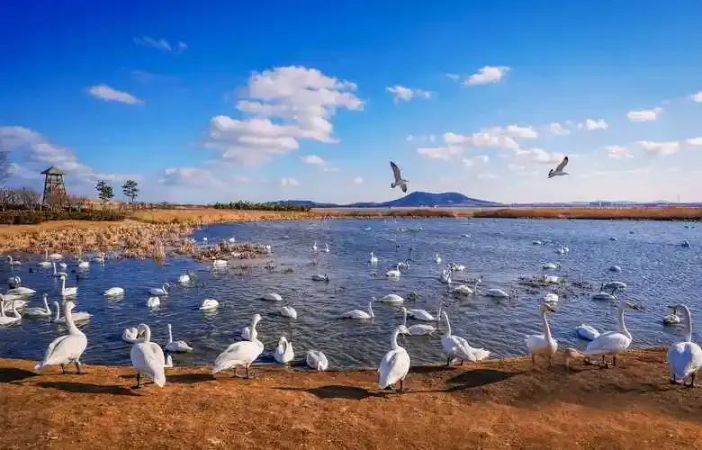生态奇观冬季的天鹅湖,是威海的一道亮丽风景线。成千上万只大天鹅从远方飞来,在这里栖息越冬,形成了一幅人与自然和谐共处的美丽画面。除了观赏天鹅,你还可以漫步在郁金香花田和芦苇荡中,感受大自然的魅力。