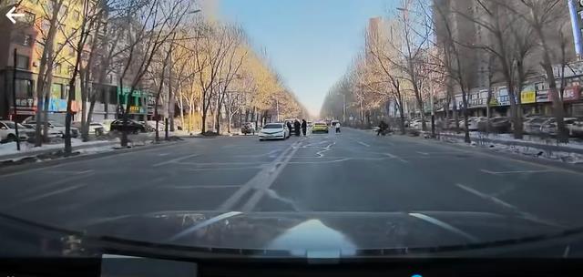 可能看到前方有几位民警正在路边处理事故,女司机也渐渐放慢了速度,想看看是什么情况。结果对面正巧迎面走来一位穿着白色衣服的女子。