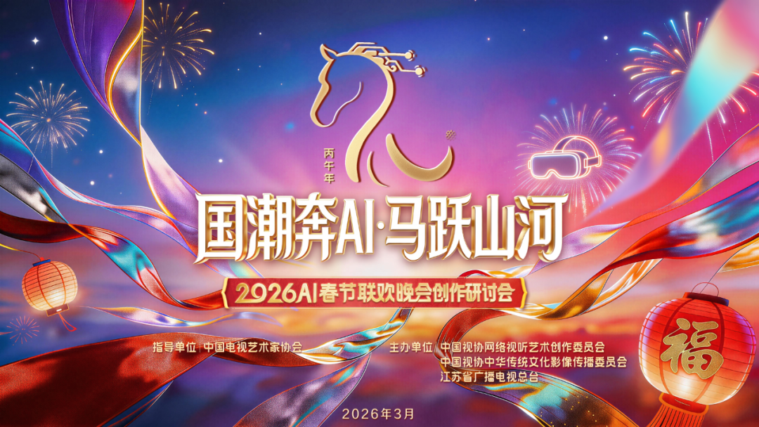 3月9日,由中国电视艺术家协会指导,中国电视艺术家协会网络视听艺术创作委员会、中国电视艺术家协会中华传统文化影像传播委员会和江苏省广播电视总台主办的《国潮奔AI·马跃山河——2026AI春节联欢晚会》创作研讨会在北京举行。本届晚会主办承办单位的领导与嘉宾、创作团队和平台代表、行业专家,以及媒体记者齐聚一堂,从主题思想、创作流程和技术赋能等多维度切入,共同研讨晚会的现实意义和艺术价值,深入剖析人工智能时代视听创作的创新手段。