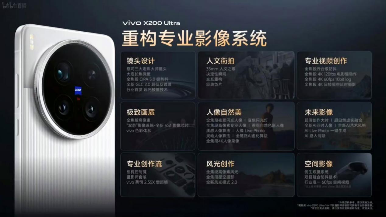 镜头配置上,vivo X200 Ultra 搭载蔡司三大定焦大师镜头,堪称豪华阵容。14mm “鹰眼” 超广角镜头,搭配蓝图 × 索尼 LYT - 818 1/1.28" 超大底,进光量相比上一代大幅提升 181%,结合 CIPA 5.0 级防抖与蓝图夜景算法矩阵,无论是拍摄宏大场景,还是超广夜景,都能捕捉到丰富细节;35mm 超大底 “人文之眼”,采用 GLC 2.0 超低反镀膜技术,将可见光波段平均反射率降低至 0.1% 以下,精准还原创作者观察视角,无论是人文纪实,还是静物小品拍摄,都能呈现纯净通透的高质量画质;第二代 85mm 蔡司 APO 超级长焦镜头,进光量提升 38%,防抖能力提升 41%,在 2 亿像素超高解析力下,实现专业级长焦人像质感,长焦微距也突破物理极限,配合 AI 景深算法,能呈现逼近单反微距镜头的极浅景深和虚化背景。