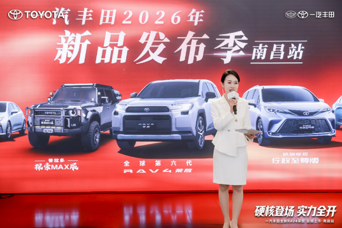 1月24日,一汽丰田2026新品发布季南昌站活动在南昌万象天地圆满结束。在近百名车主及主流媒体的共同见证下,万众期待的第六代新荣放、全新智混卡罗拉及中部大区系列高端定制车型悉数亮相。现场以沉浸式互动体验与多元产品展示,搭建起品牌与用户深度沟通的桥梁。
