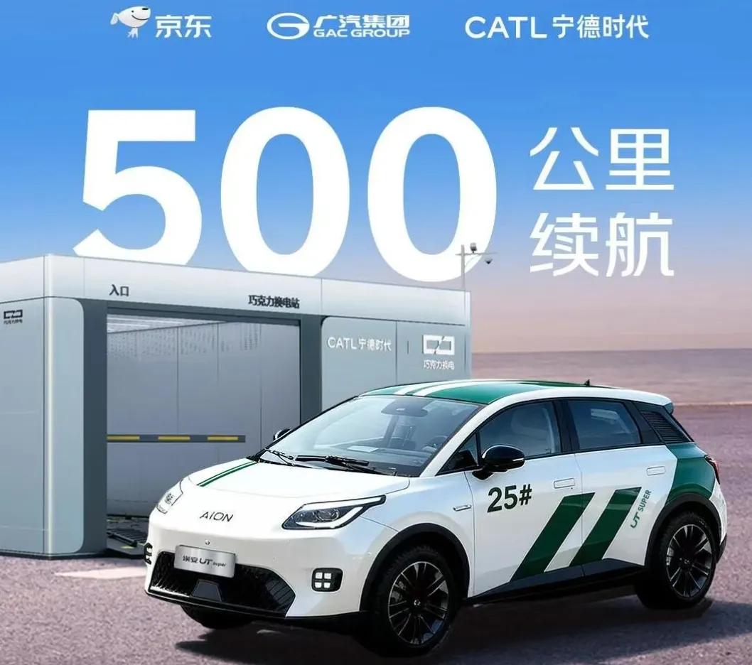 埃安UT super的上市,也能够将其看作是埃安UT的换电版,它在广汽集团、宁德时代、京东联合推出后,目前也仅在京东独家销售,埃安UT super标配了宁德时代的磷酸铁锂电池,续航里程最高为500km,换电的时间仅需99秒。