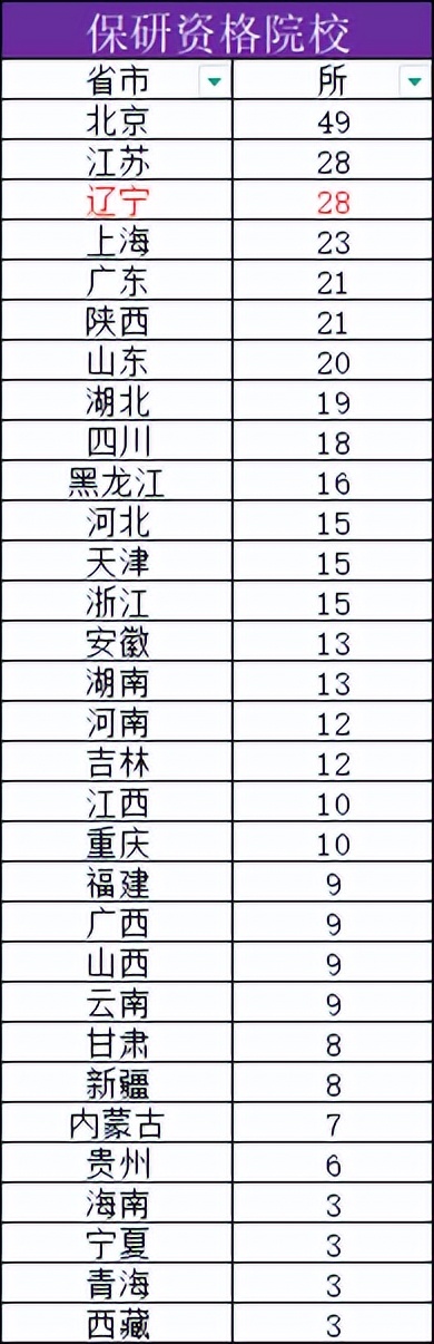 江苏(28所) 和 辽宁(28所):并列第二。江苏是经济和教育强省,高校数量众多。辽宁作为东北老工业基地,历史上布局了众多重点大学,底蕴深厚。上海(23所):作为经济金融中心,其高校数量虽不是最多,但名校云集,质量极高。陕西(21所):特别是西安,作为西部教育重镇,拥有西安交大、西工大等大量优秀高校,体现了历史布局的优势。广东(21所):经济第一大省,近年来高等教育投入巨大,发展迅猛,与山东(20所)、湖北(19所)同属教育核心区。第三梯队:中坚力量——四川、黑龙江、河北、天津、浙江等
