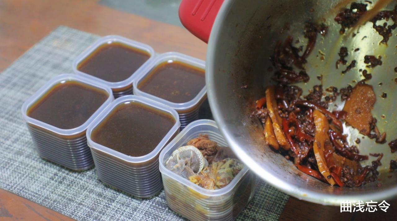 11、卤水保存:卤水再次烧开,再次静置冷却,过滤出卤水到无水无油的干净容器中,过滤后的残渣不要,卤料包挤干水分与卤水分开放置,干湿分离,密封后冷冻保存。