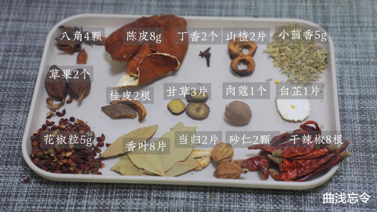 2.卤料不是固定的,可以根据自己喜欢调整配方,有一些没有也没关系。主要的大卤料比如八角、花椒、草果、桂皮、香叶、小茴香等等有就可以。卤料品种多一些其卤味更丰富。