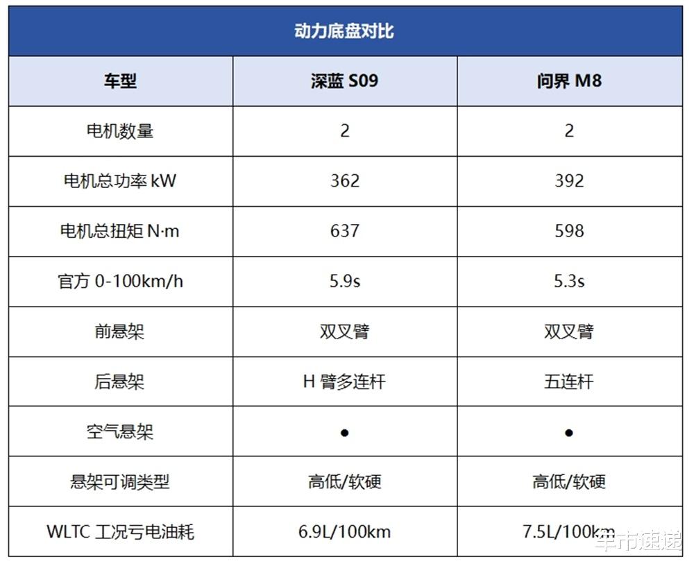 而考虑到价格因素综合定位,这里主要选取深蓝S09四驱Ultra+高定版,与问界M8 201km MAX 6座版两款车为核心做对比(以下简称深蓝S09、问界M8)。