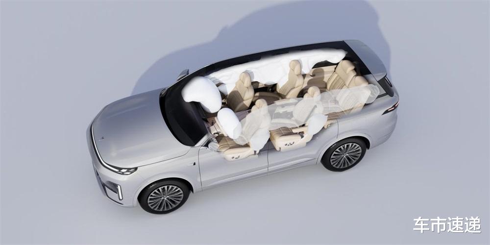 对于第三排,除了空间舒适平权,深蓝S09还做到了安全平权,配备了超长侧气帘,长度达2700mm,三排全覆盖,能够为全员提供更有效的侧面碰撞保护,避免二次碰撞或翻滚带来的伤害;同时,整车搭载8个安全气囊,形成12个安全保护点位,为每一位家人提供360度的周全保护。