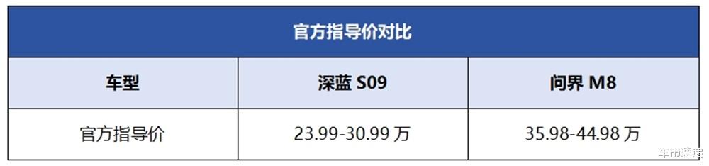 论价格这一板块,深蓝S09的顶配款与问界M8的起步价格尚有一定差距,拥有让人更好接受的价格。
