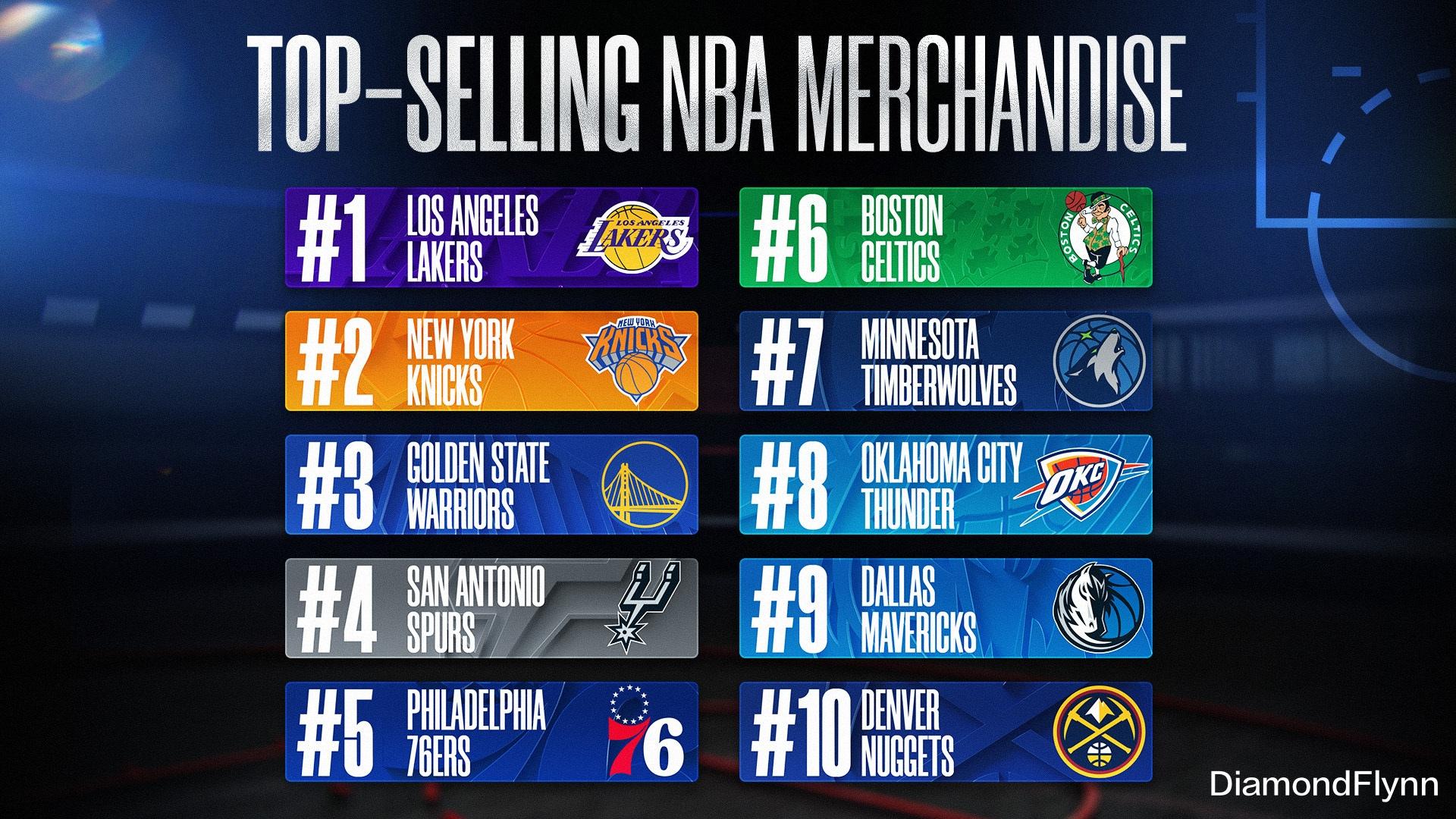 美国国家篮球协会(NBA)和美国国家篮球运动员协会(NBAPA)今日联合宣布,金州勇士队的斯蒂芬·库里和洛杉矶湖人队分别荣登NBA球衣和球队周边商品销量榜榜首。该榜单的销量数据来自NBAStore.com和Fanatics旗下网站(包括Fanatics.com及其合作伙伴网站)。