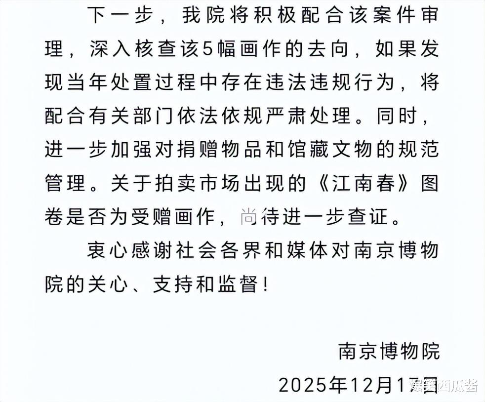 庞叔令现在申请强制执行,要的不仅仅是那5幅画的下落,更是要撕开那个“内部处置”的黑箱。那几件“伪作”当年到底卖给了谁?卖了多少钱?这笔钱进了哪个账户?这些问题,南博至今支支吾吾,不敢拿出一张像样的票据。这种沉默本身,就是最大的心虚。
