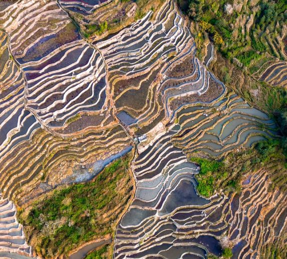 元阳梯田坐落于云南哀牢山南部,由哈尼族人历经一千三百余年开垦而成,总面积达十七万亩,是依循山势构建的立体农耕景观。这里以“森林-村寨-梯田-水系”四素同构的生态系统为特色,山形、水光与光影交织成独特风貌,既承载着古老的农耕智慧,也留存着人与自然共生的鲜活印记。