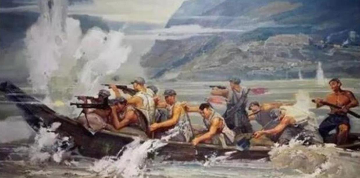 忽然,一颗炮弹打在了小船边上,溅起的水花几乎要把小船打飞,但是他们都站得笔直,毫无畏惧。此时岸上的官兵都很紧张,肖华从号手手里接过号角,挺胸而上,亲手吹响了冲锋号角。军炮队的神射手将一枚枚炮弹精准地发射到对岸,掀翻了敌人的掩体,勇敢的战士趁着敌人的炮火暂时停歇,迅速穿过激流,越过险滩,跃上了对岸。这期间,由于船只被礁石卡着,帅仕高带领其他船工猛地跳进水里,硬生生将动弹不得的船只推了出来,随后继续划向岸边。