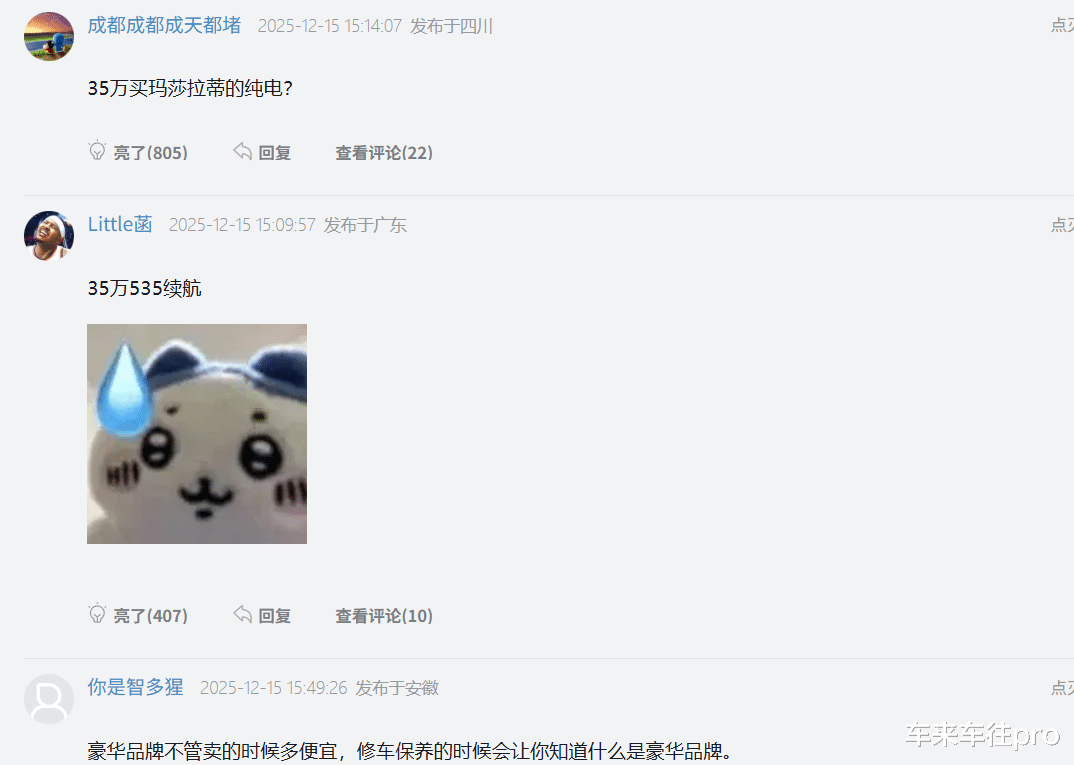 但争议也随之而来。有人认为这是“捡漏”,也有人质疑是否存在刻意放量制造热度的嫌疑。毕竟如果35万的玛莎拉蒂真的敞开卖,一旦街头能见度大幅提升,对玛莎拉蒂原本依赖稀缺感支撑的豪华形象,反而是一次重击。