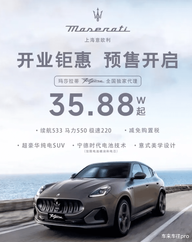 当一台玛莎拉蒂的新车,卖到三十多万,并且被消费者一抢而空,这件事本身就已经足够魔幻。35万的纯电玛莎拉蒂格雷嘉,几乎等同于一台中高配国产新能源SUV的价格,却挂着三叉戟车标,这对任何消费者来说,都很难不心动。