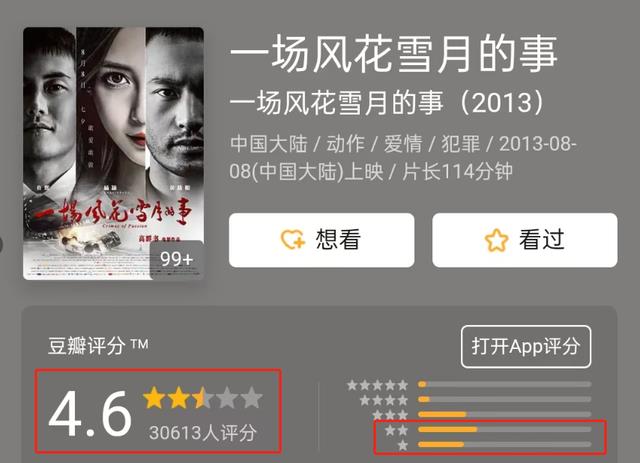 最后的结果就是导致电影《一场风花雪月》评分才4.6,差评满天飞。