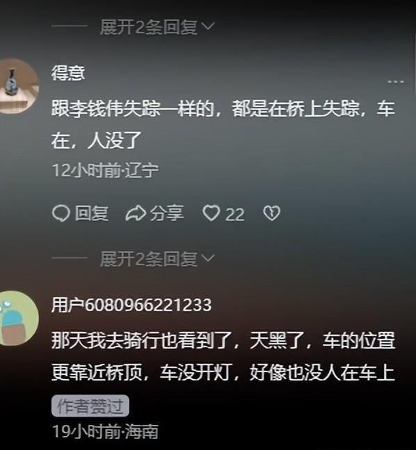 家属和警方的多次搜寻都未能找到他的踪迹,至今没有发现任何直接证据,无法确认李前伟是否跳桥自杀,也无法排除他被他人伤害的可能性。