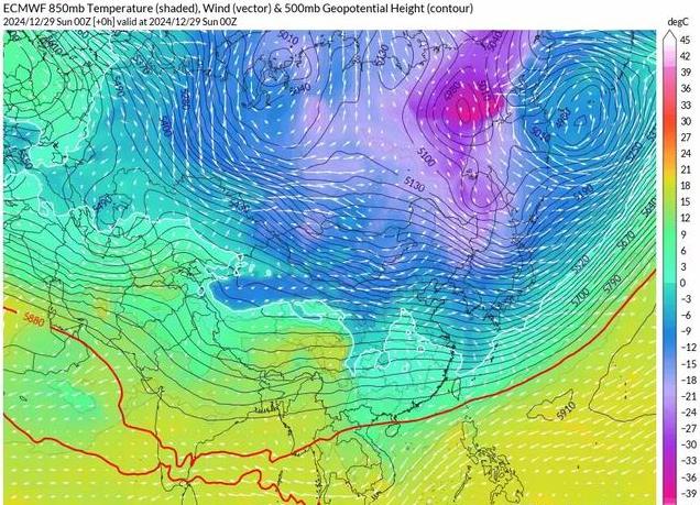 再来看看日本的降雪,情况也相当严重。冷空气不断流向日本海,与海面的湿润空气相遇,便形成了冷流雪。这场雪导致日本北部的积雪深度打破了记录,交通和电力供应都受到了影响。