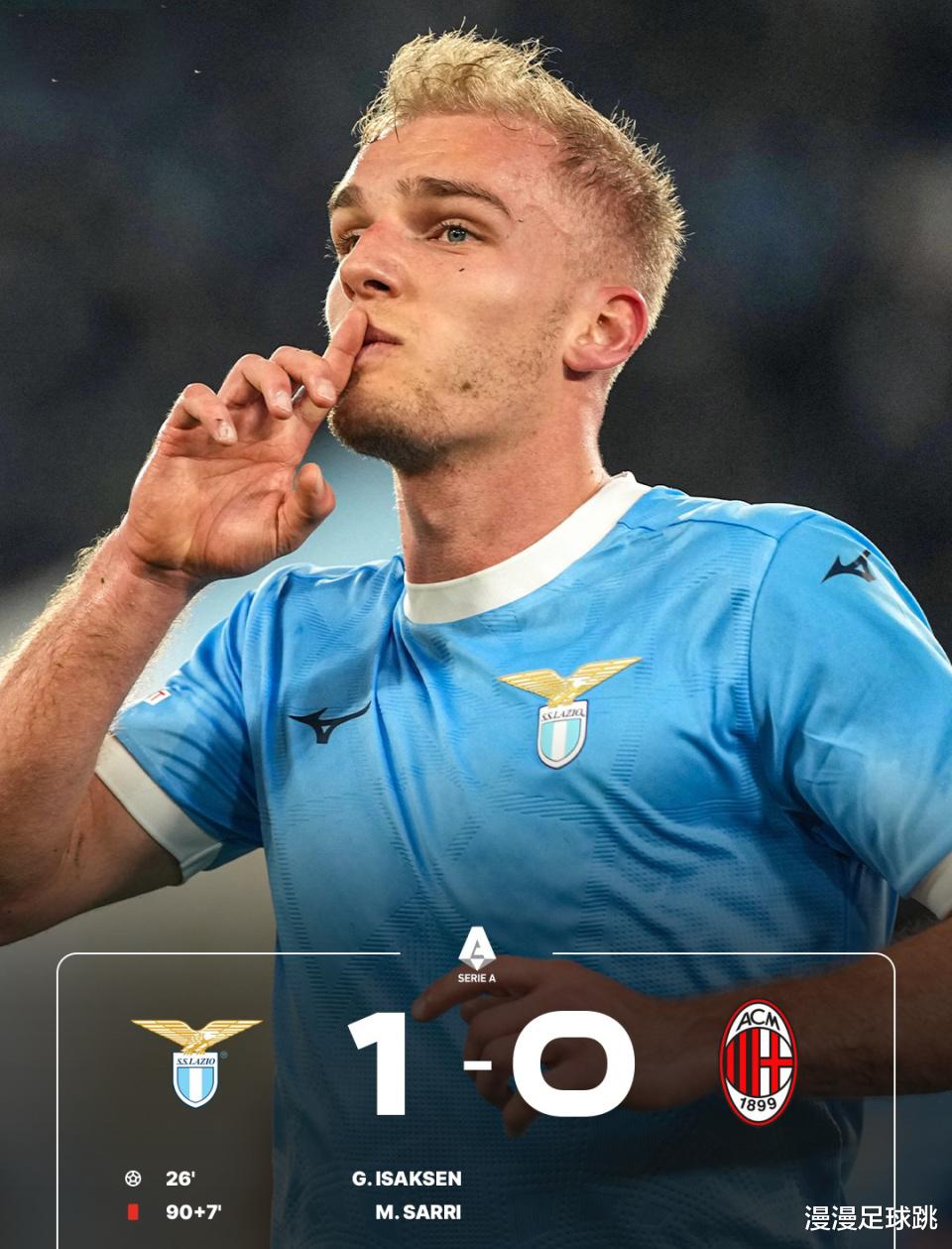 第26分钟,拉齐奥利用一次快速反击打破僵局。主队后场长传发动进攻,伊萨克森在与米兰后卫的身体对抗中占据优势,随后面对门将迈尼昂冷静小角度推射破门,拉齐奥取得1-0领先,这也是全场唯一进球。