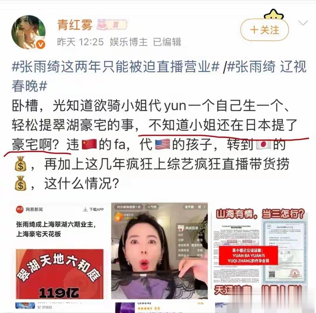 随着张雨绮前夫袁巴元前妻葛晓倩的曝料升级,通过各种社交平台实锤演员张雨绮,这次张雨绮恐怕难上辽宁卫视的春晚了,目前与张雨绮相关联的词条全部都是炫富、代孕和私生活等负面消息。