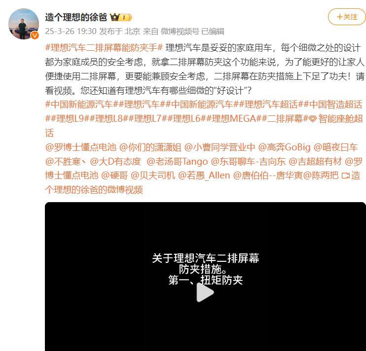 在理想汽车事件发生后,理想汽车的高管迅速作出了回应。他们解释了二排屏幕的防夹机制,包括扭矩防夹和触控防夹的双重保护设计。尽管如此,这样的回应是否能让消费者的忧虑减轻?一方面,这些高管强调了家庭用车的安全设计逻辑,试图通过技术细节展示出理想汽车的责任感。另一方面,这种回应是否真的能打消公众的疑虑?在事故发生后,很多网友在社交平台上表示,很多人在使用智能设备时并不知道其可能带来的安全隐患。